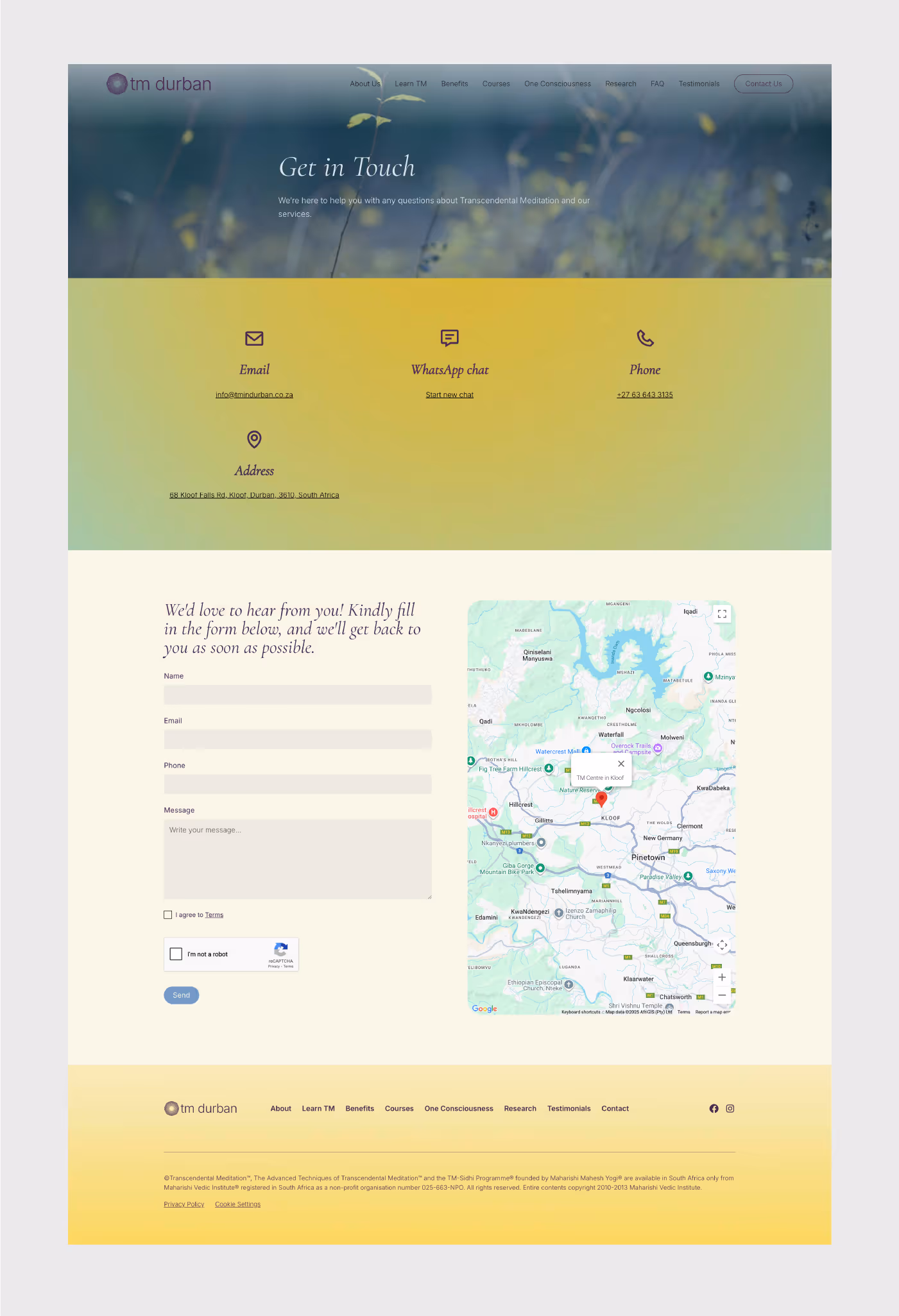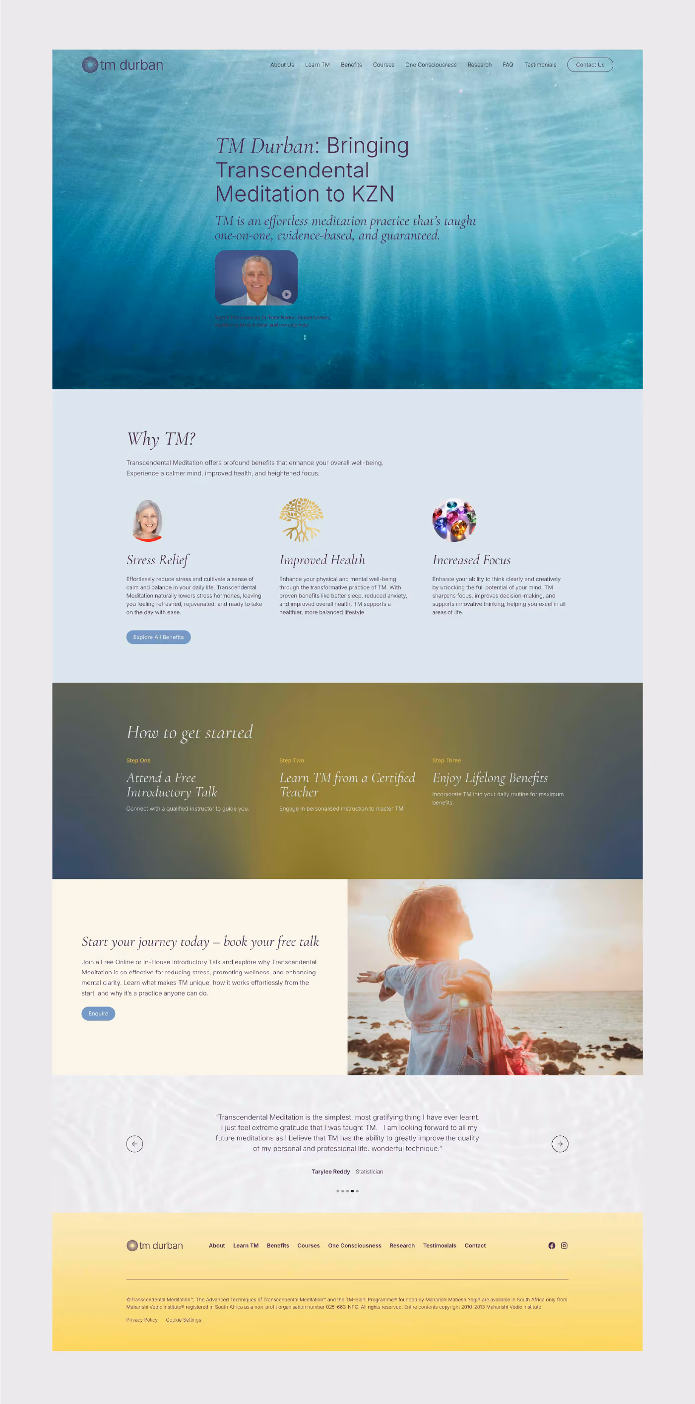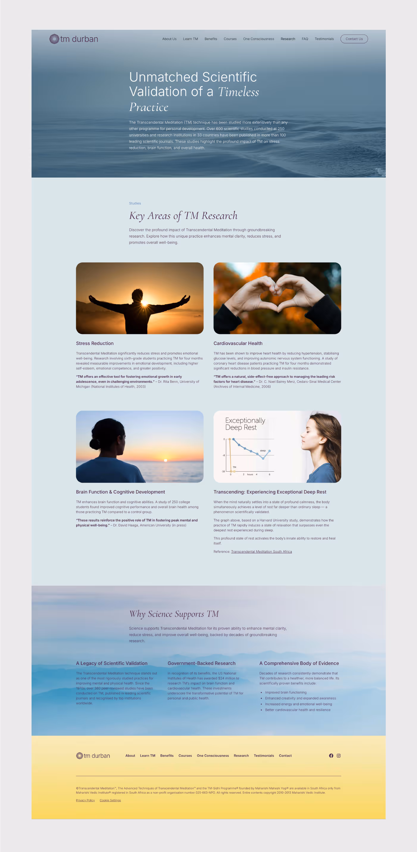 TM Durban now possesses a digital presence that meets global standards while remaining deeply rooted in the local community. The Webflow site is a high-impact, visually beautiful tool that has replaced a "outdated" site with a vibrant, high-performing one. The brand now radiates the calm and professionalism it represents, providing a seamless experience for those looking to learn about TM in a gentle way.
